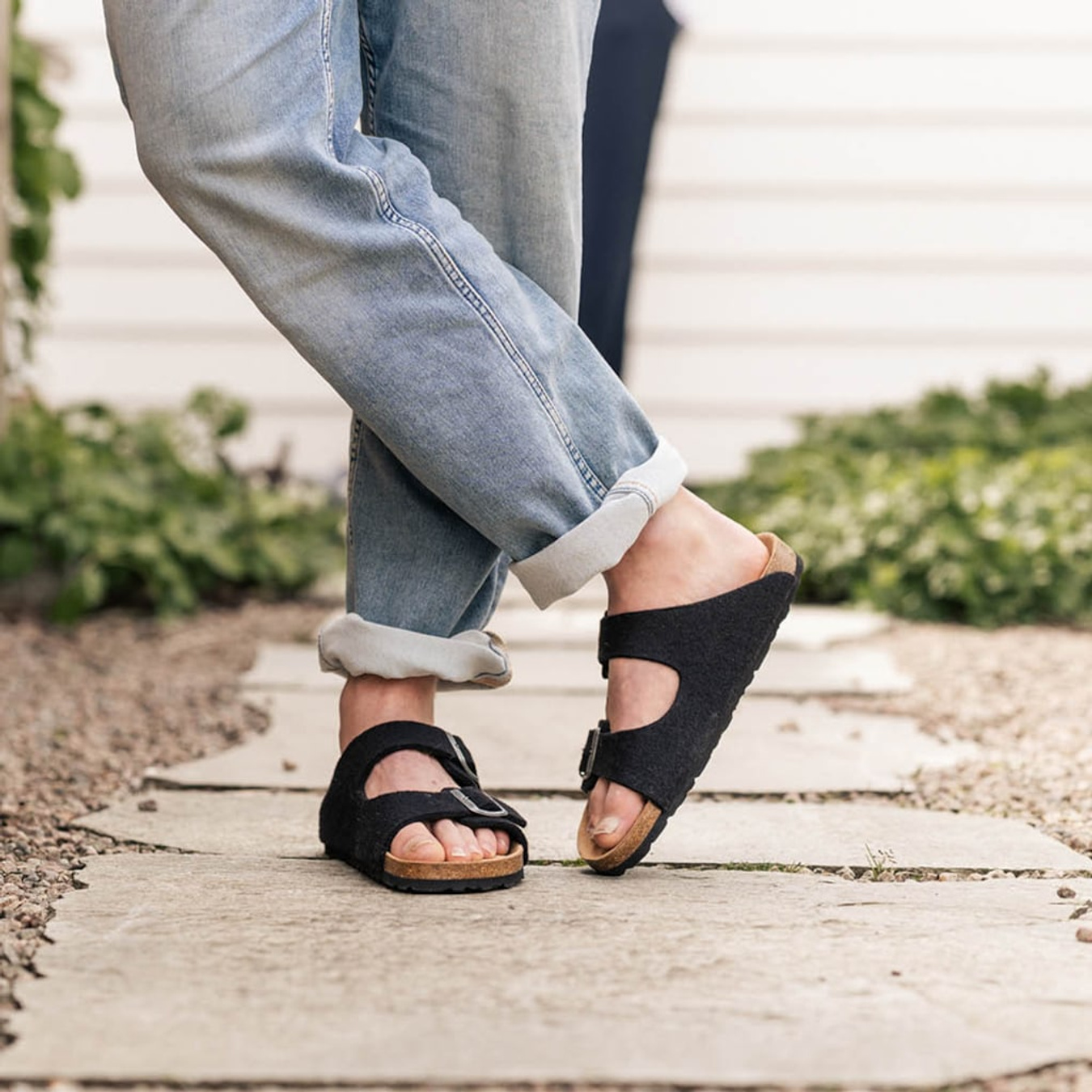 Shepherd Mikael is a sturdy and comfortable two-strap sandal for those who want something that simply works, at home, on the patio, or for a quick trip to the store. The two adjustable straps adapt to the foot, while the suede-covered, anatomically shaped cork footbed provides stable and comfortable support throughout the day. The lightweight EVA outsole offers good grip on both decking and gravel paths.