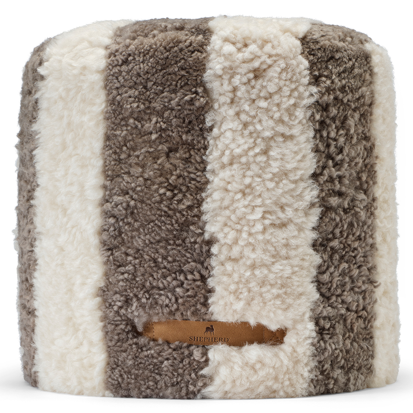 Shepherd Randy is a round Pouf with a striped pattern made from genuine sheepskin sourced from Australia. Its clean, stylish design makes it perfect both as an extra seat and as a soft decorative element.