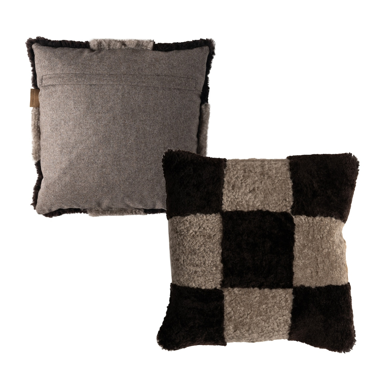 Shepherd Ruth. A checkered cushion in sheepskin. The back made of weaved wool. Hidden zip.