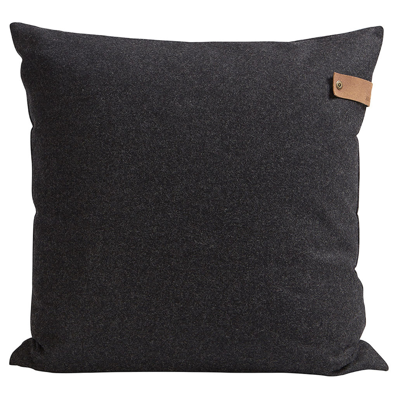 Shepherd Tina. A cushion made from soft, weaved wool with a decorative leather imatation handle. The cushion cover is removable and washable with a hidden zip. The inner cushion is a polyester mix with a filling of 50% silicon and 50% duck feathers which makes the cushion fluffy and allows it to keep its form. 50x50cm, 19,7x19,7 inches