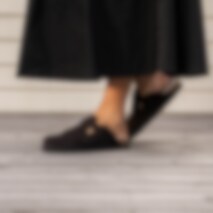 Shepherd Hilma är en clog med tidlös design som passar lika bra till jobboutfiten som till brunch med vänner och en runda på stan. Den finns nu i två naturliga material, mjuk mocka med klassisk, matt yta, och värmande ull.