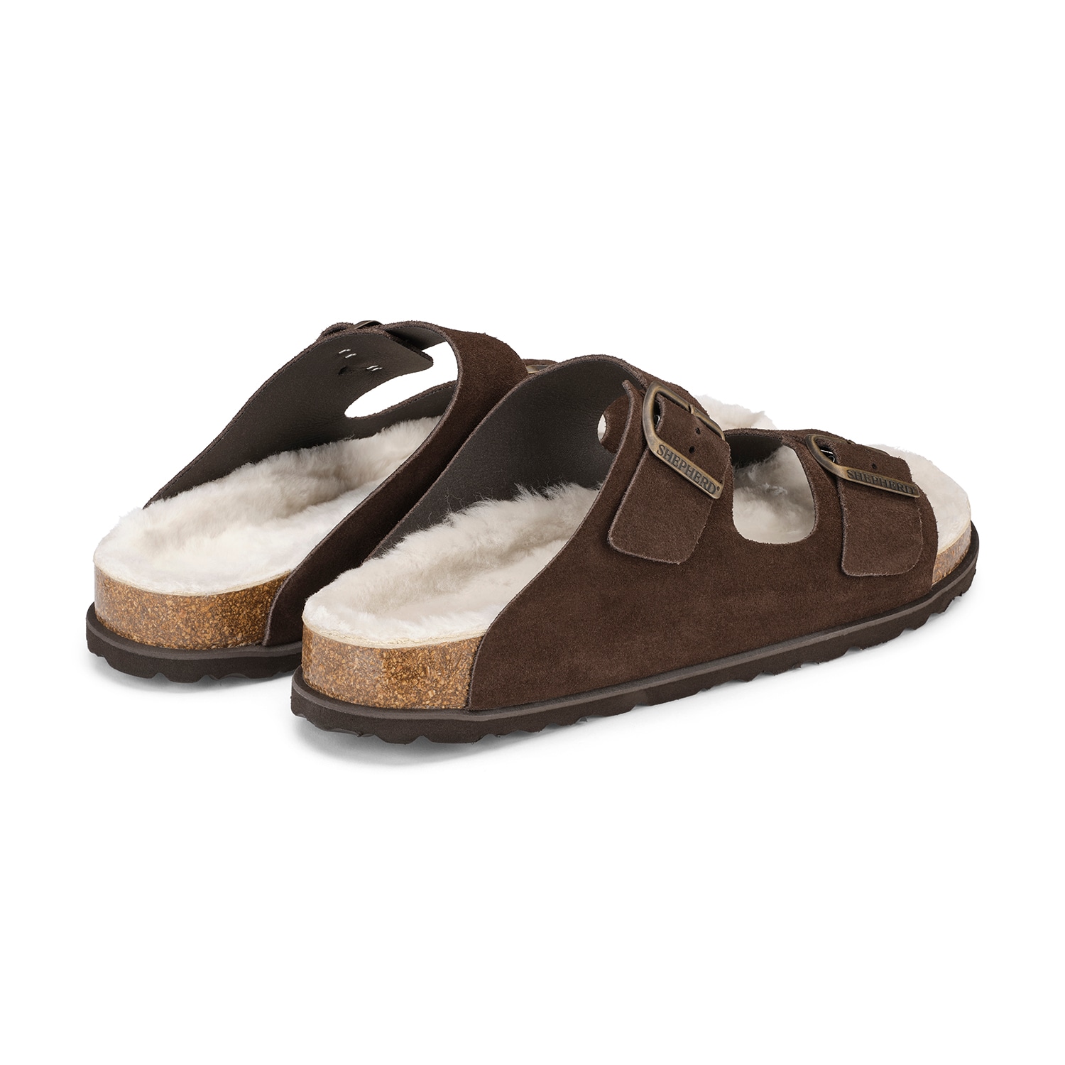 Korksulan, klädd i fårskinn, andas naturligt och formar sig efter foten över tid, medan den lätta EVA-yttersulan ger bekväm stötdämpning i varje steg.