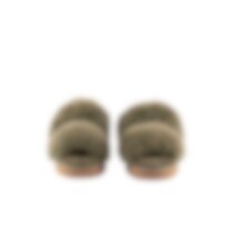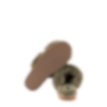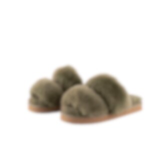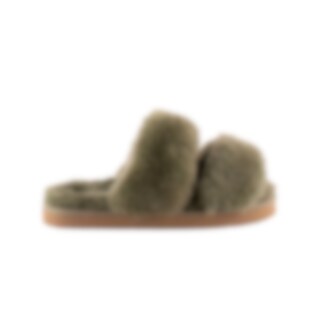 Shepherd Thelma is a pair of slides in sheepskin with wide straps and an open toe. Fabric trim. EVA outer sole.