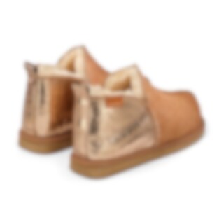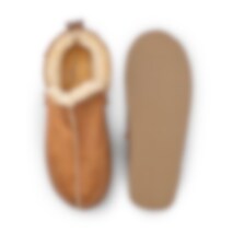 Shepherd Annie is a classic ankle-high slipper in genuine sheepskin that combines warmth, comfort, and style. The breathable sheepskin lining keeps feet naturally warm, while decorative seams and textile edging give the design a timeless expression.