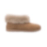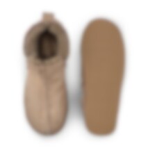 Shepherd Annie is a classic ankle-high slipper in genuine sheepskin that combines warmth, comfort, and style. The breathable sheepskin lining keeps feet naturally warm, while decorative seams and textile edging give the design a timeless expression.