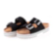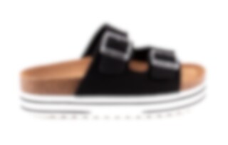Shepherd Kattis. A pair of platform sandals in wool. The sandals have two adjustable buckles at the front. Anatomically designed insole in cork and suede. Rubber outer sole. Platform height approx. 3 cm.