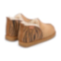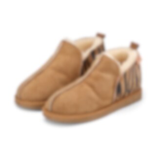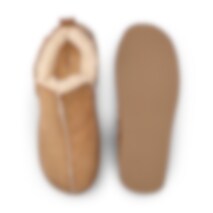 Shepherd Annie is a classic ankle-high slipper in genuine sheepskin that combines warmth, comfort, and style. The breathable sheepskin lining keeps feet naturally warm, while decorative seams and textile edging give the design a timeless expression.