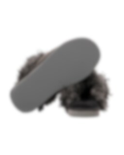 They feature a wide, curly collar in sheepskin from Gotland sheep, a natural detail that adds both warmth and a touch of Scandinavian character. A decorative exposed seam at the front enhances the handcrafted look, while a discreet textile trim frames the sole.